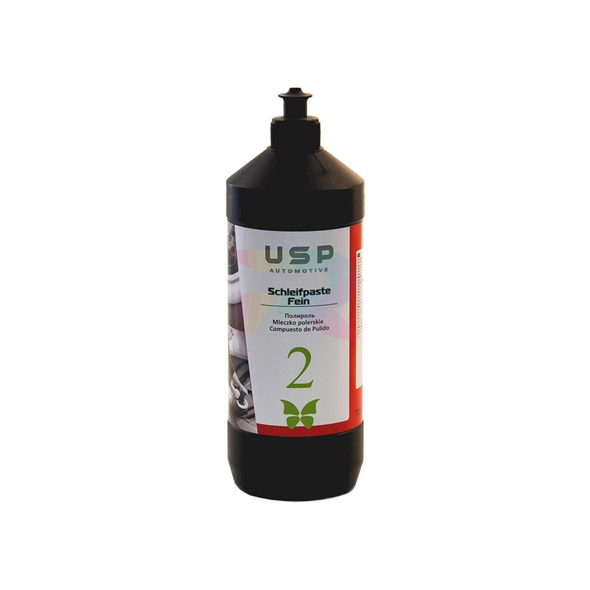 Полироль USP Schleifpaste Fein №2 - быстродействующая тонкоабразивная полироль предназначена для удаления помутнений лакокрасочного покрытия, мелких рисок и границ окраски переходом. Идеально подходит для обработки свежих мягких лакокрасочных покрытий. Быстрое удаление мелких рисок и придание блеска.Для любого лакокрасочного покрытия: нового, старого, заводского и перекрашеного. Обеспечивает высокое качество полировки поверхности.